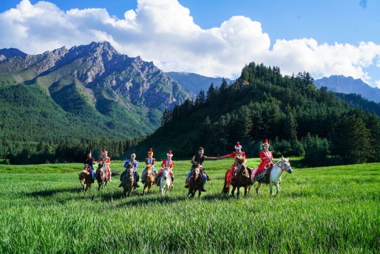 独特的民族风情,是肃南最动人的文化符号。裕固、藏、汉、回、土、蒙古等20多个民族在此聚居交融。被称为“向着太阳的民族”的裕固族,传承着古回鹘的文化基因,其独特的语言、歌舞、服饰、婚俗、人生礼仪等,无不浸透着浓郁的游牧文化气息与宽广的草原情怀。在这里,悠扬的牧歌回荡在草原之上,醇香的美酒饱含着民族热情,圣洁的哈达传递着真挚祝福,各民族文化在交流生,演绎出和谐共生的人文画卷。
